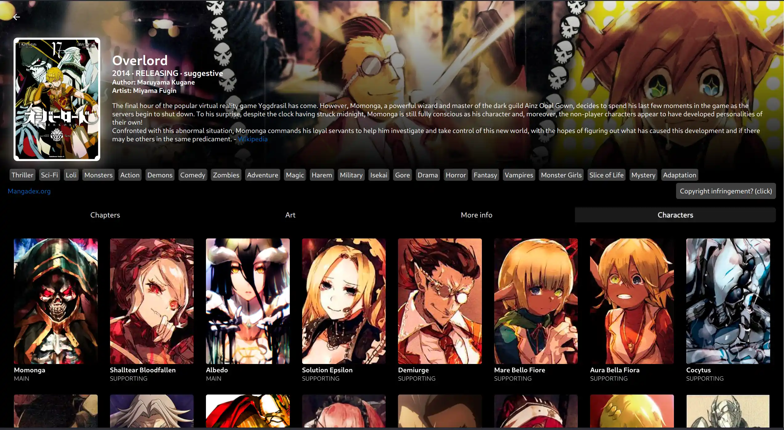 A Mangadex client, with EPUB/CBZ download options, and a sleek UI.